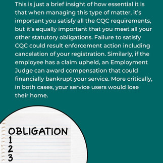 Meeting your CQC requirements is crucial — but don’t overlook your legal obligations to your staff. When serious allegations arise, such as gross misconduct, handling suspension lawfully and fairly is vital. A misstep can lead to serious consequences for your service and the people who rely on it.